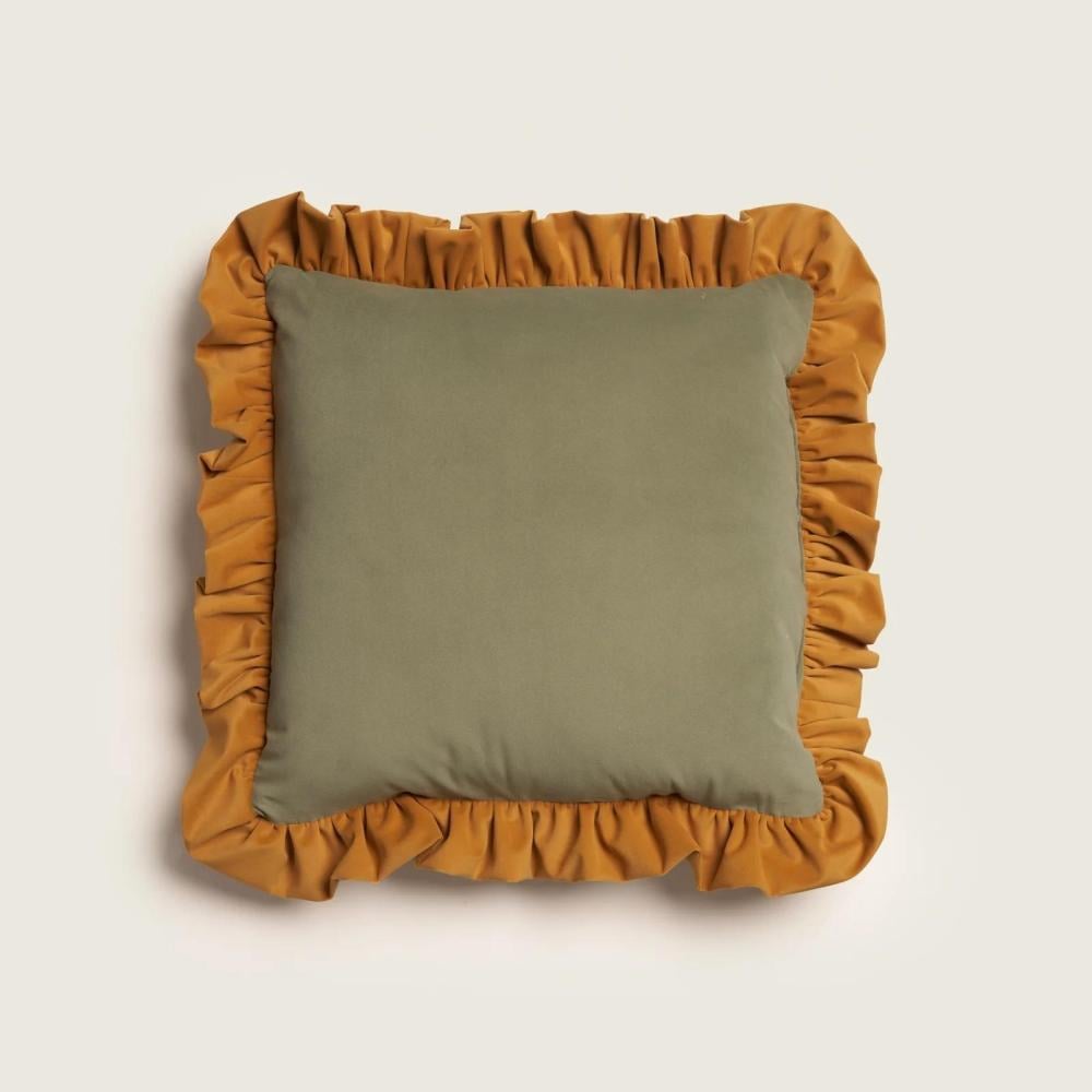 أضف لمسة مميزة إلى ديكورك مع هذه الوسادة الساحرة، المصنوعة من قماش مخملي ناعم وحواف متدلية أنيقة.