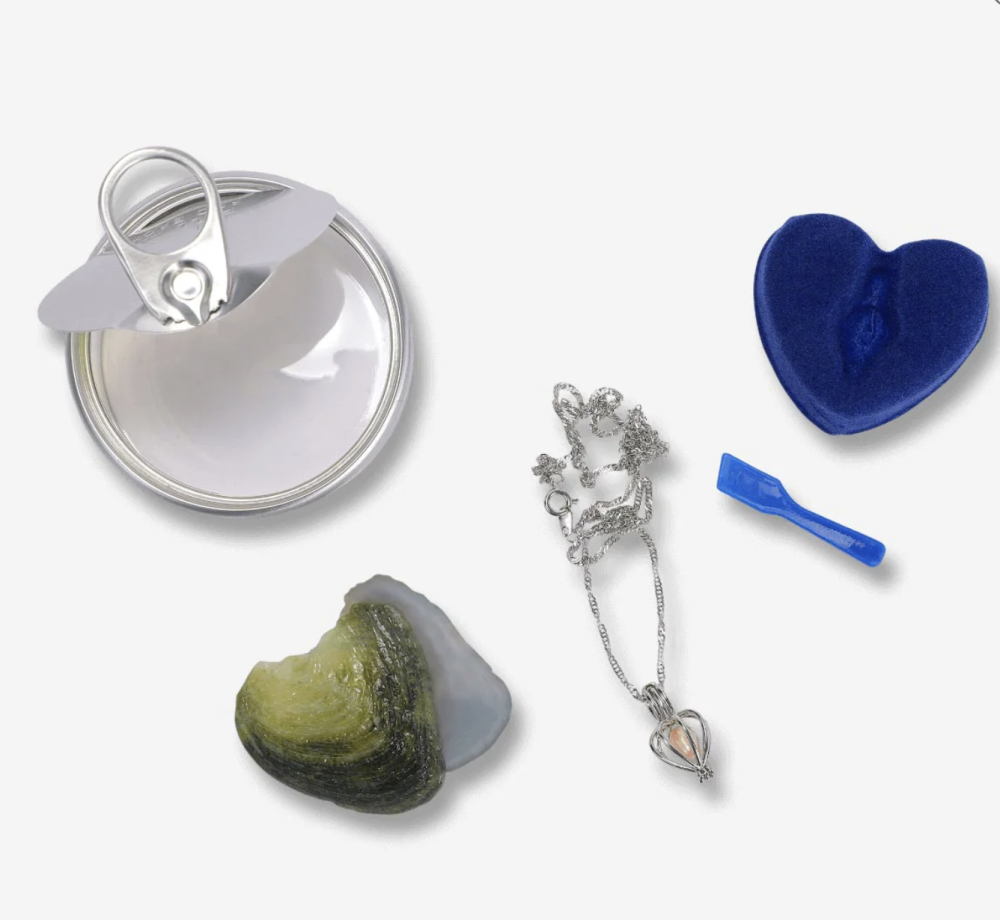 Experience the joy of discovery with this Wish Pearl Necklace Gift Set. Open the included can to reveal a real pearl, then set it into the elegant necklace provided. The set includes a pearl, necklace, opening tool, instructions, and a heart-shaped velvet container for added charm