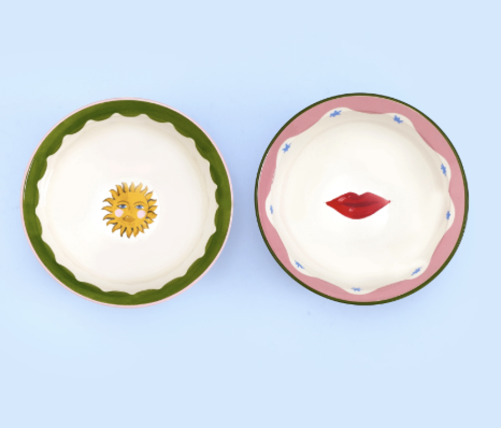 Whether it's olives, nuts or your favorite evening sweet treats, serve them in style with the Electric Coast Set of 2 Nibble Bowls. The. Hand-illustrated sun and lips with color pop borders makes them stand out. Pair them with the matching Electric Coast tableware range to bring the sunshine to your dining table all-year round.