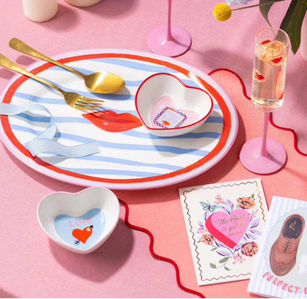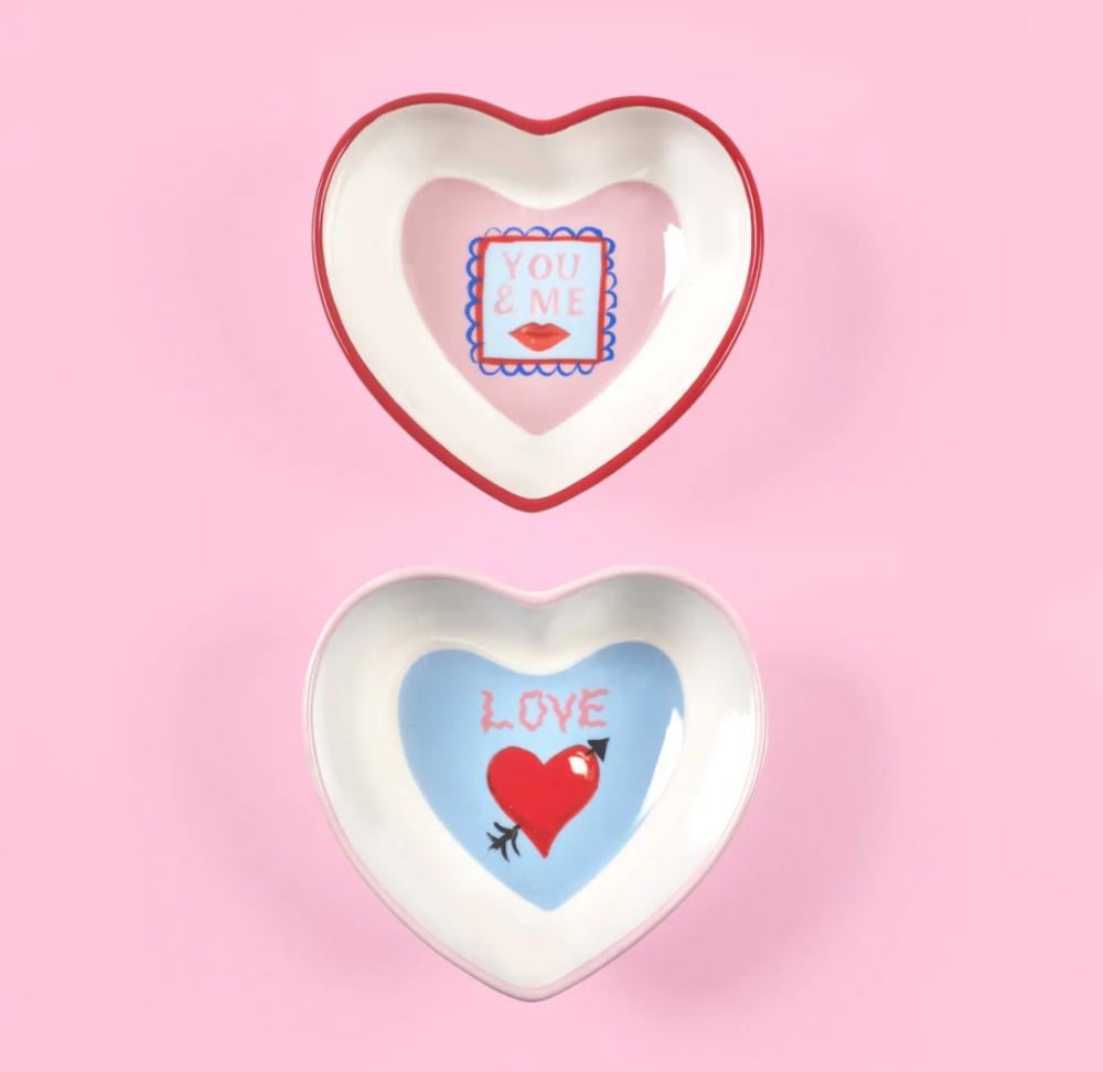 Nibble-bowls with hand-designed illustrations and a contrasting pink and red rim. Share your favourite snacks with your loved one with this set of two bowls or use it to keep your daily jewelry in a safe spot!